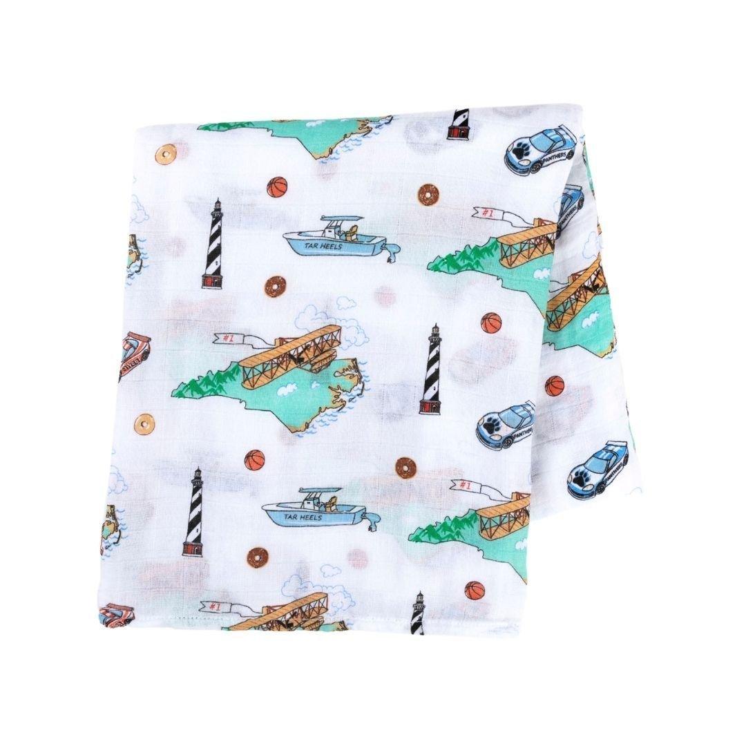 Gift Set: North Carolina Baby Muslin Swaddle Blanket and Burp Cloth/Bib Combo by Little Hometown