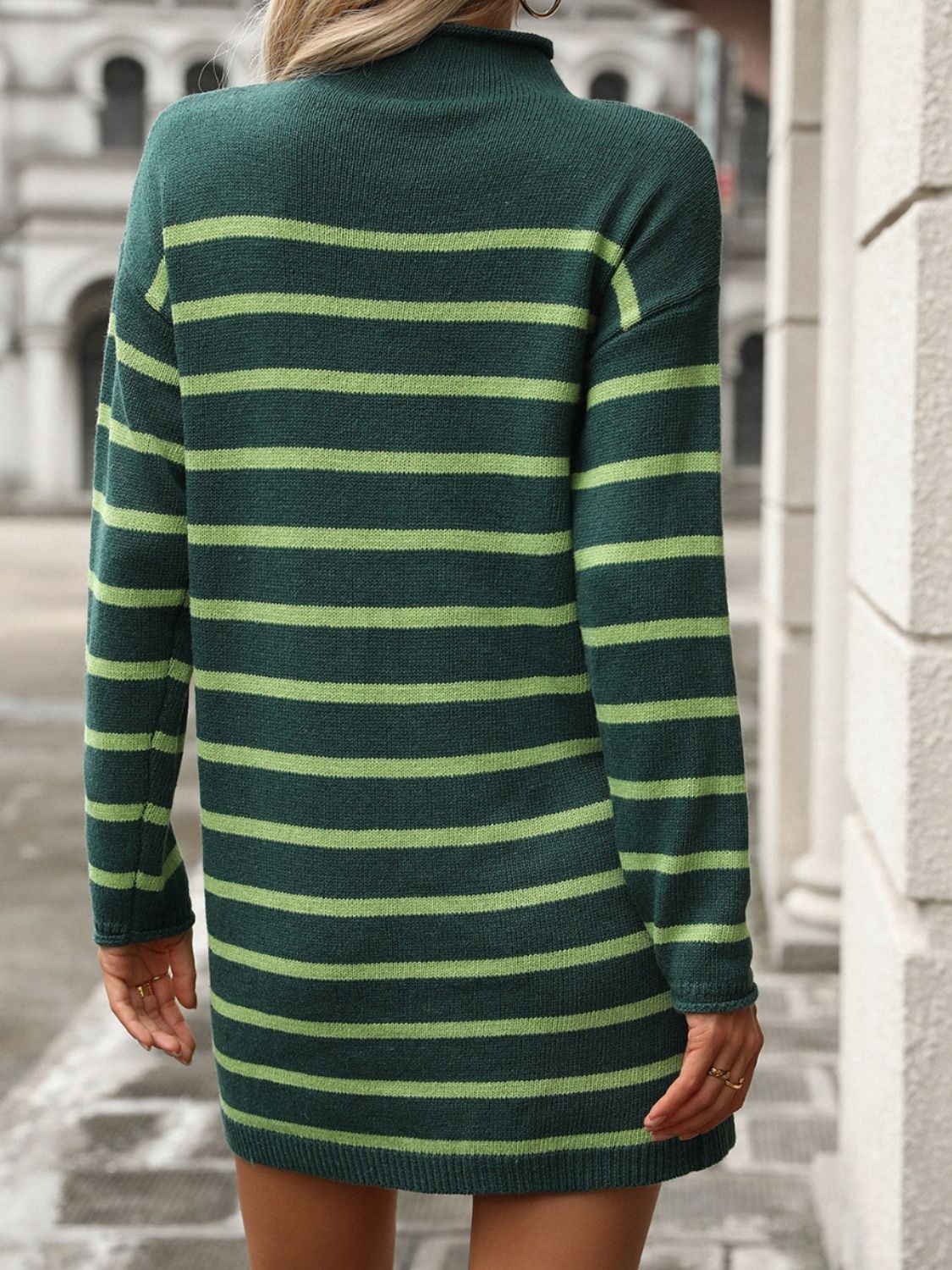 Striped Mock Neck Long Sleeve Mini Dress