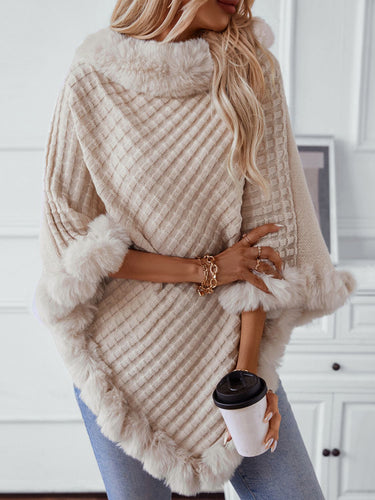 Fuzzy Trim Texture Three-Quarter Sleeve Poncho