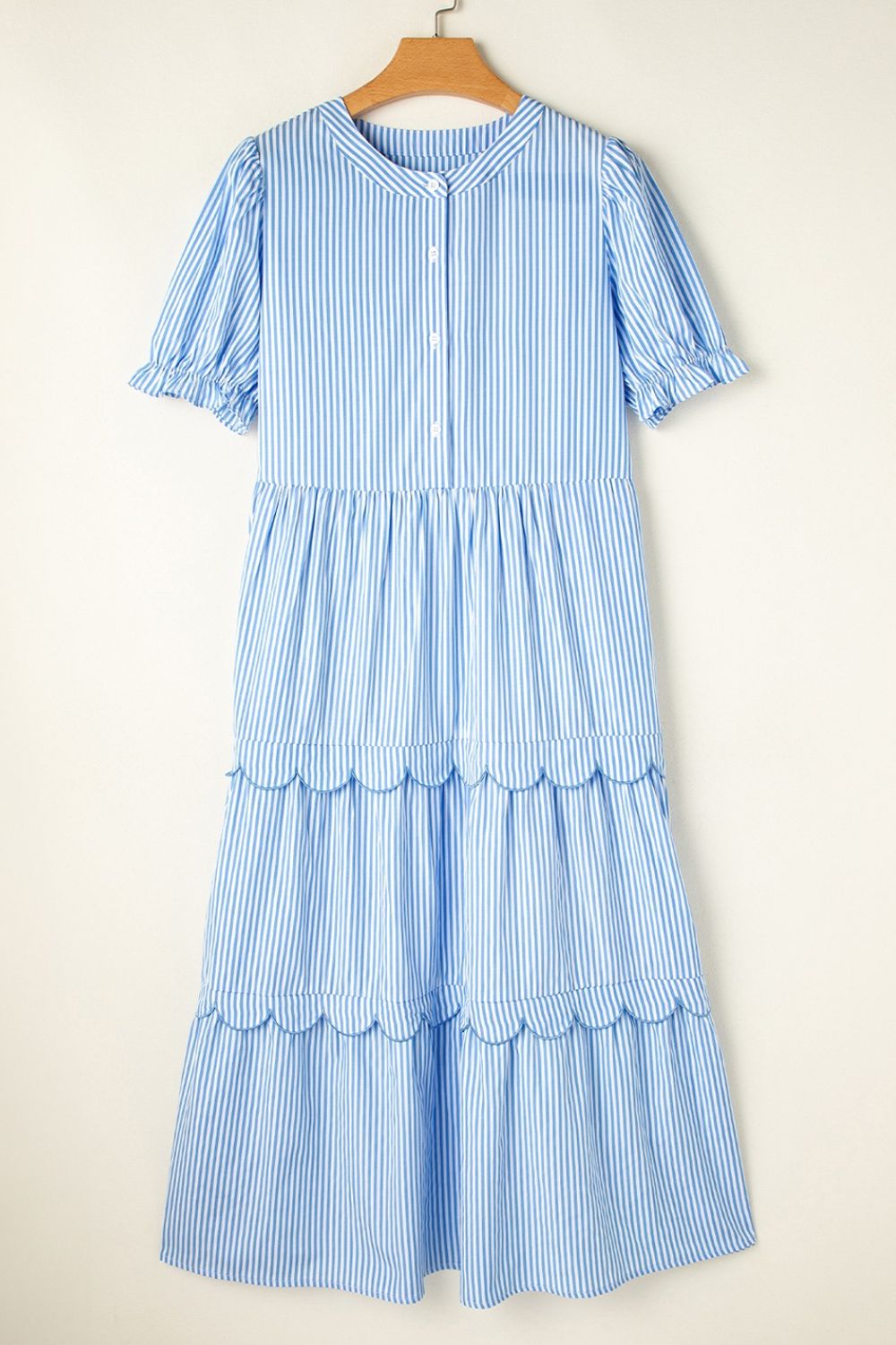 Stripe Bubble Short Sleeve Tiered Scallop Midi Dress