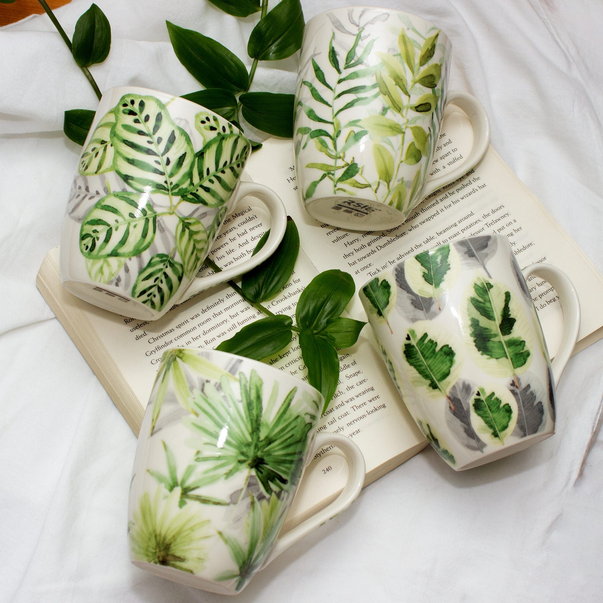 Set Of Four Tropical Season Series Ceramic Mugs by Izhar Studio- CA