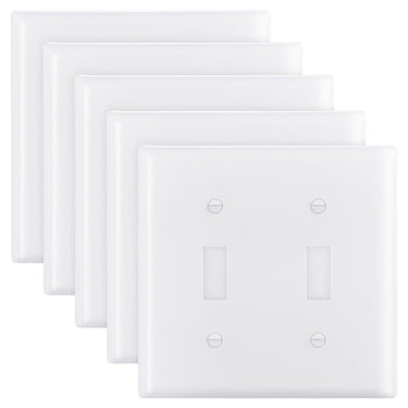 2-Gang Toggle Light Switch Outlet Covers Wall Plates 4.61 x 4.53in White 5 Pack