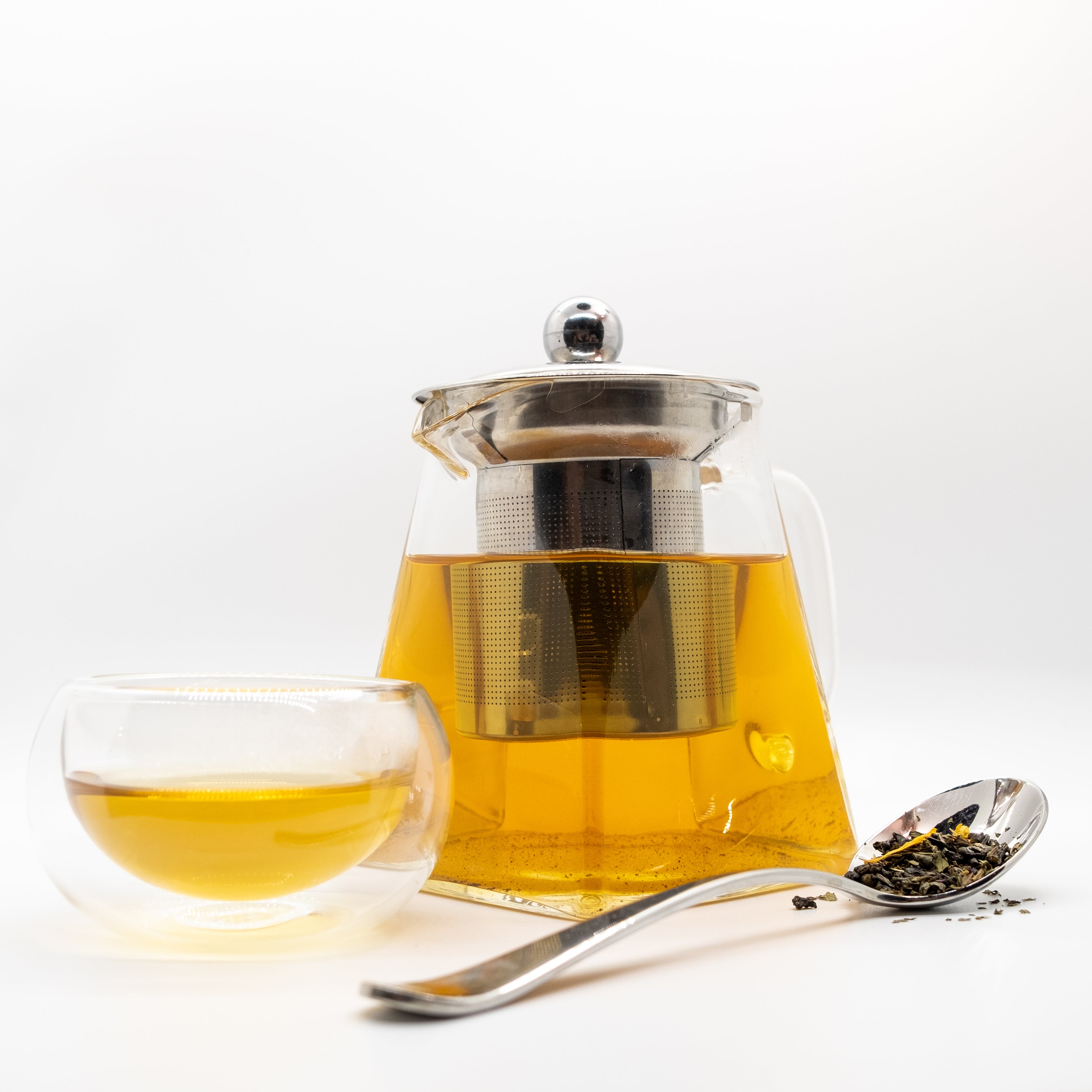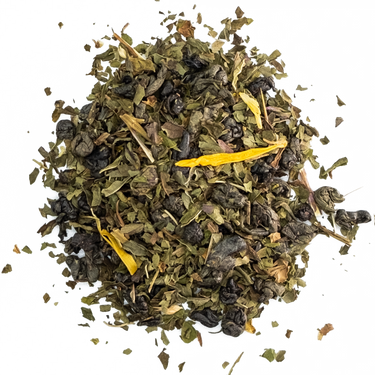 Our take on a tea house favorite. Organic gunpowder green tea from China provides a full-bodied, toasty base for this refreshing blend. The organic peppermint add a zesty sweetness, while the organic spearmint rounds out the minty flavor. Golden calendula petals add a beautiful finish to this balanced combination. A satisfying hot tea or thirst-quenching iced tea, this will surely become a staple in your cupboard.