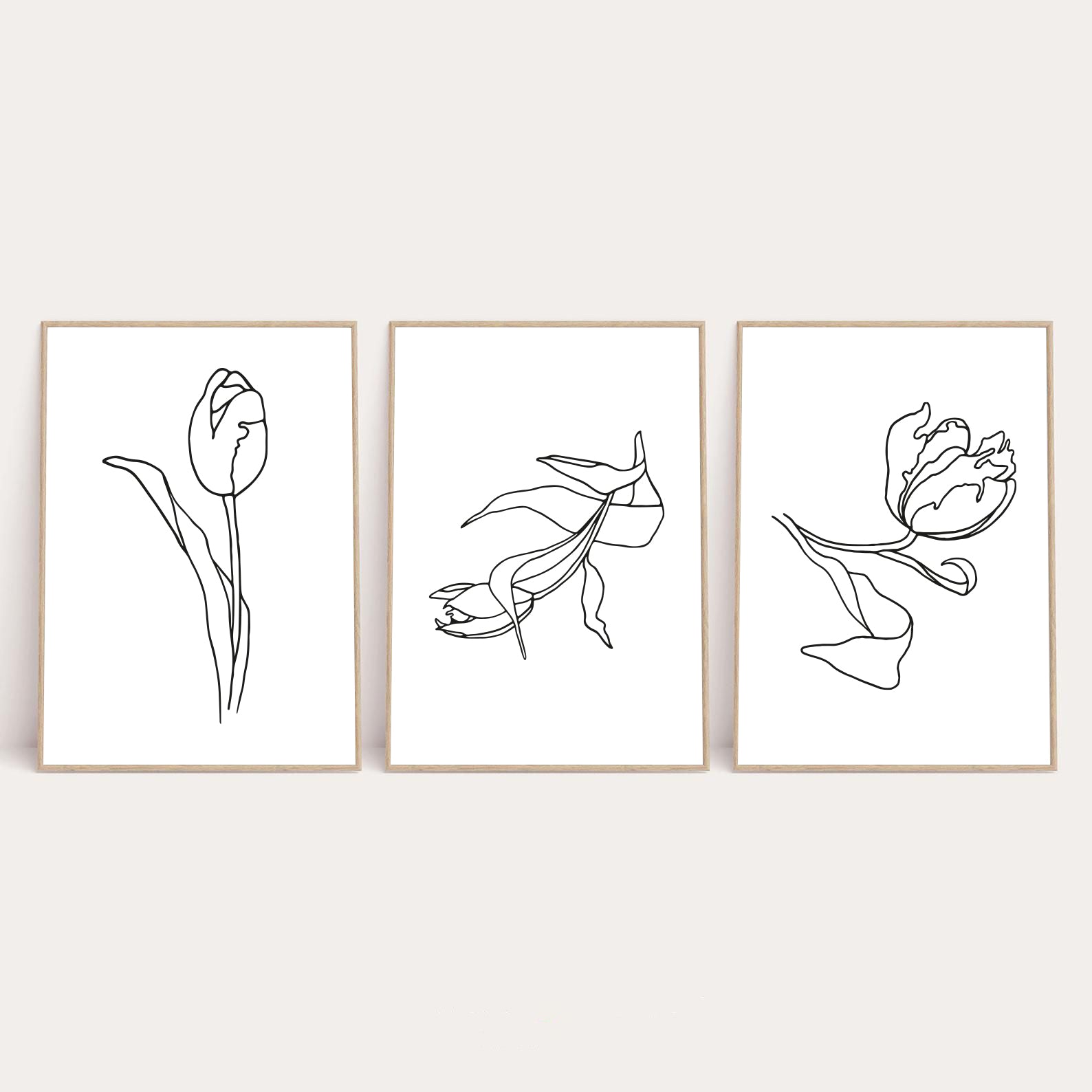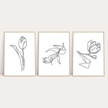 Set Of 3 Flowers Simple Line Work Bedroom Wall Decor Print by WinsterCreations™ Official Store