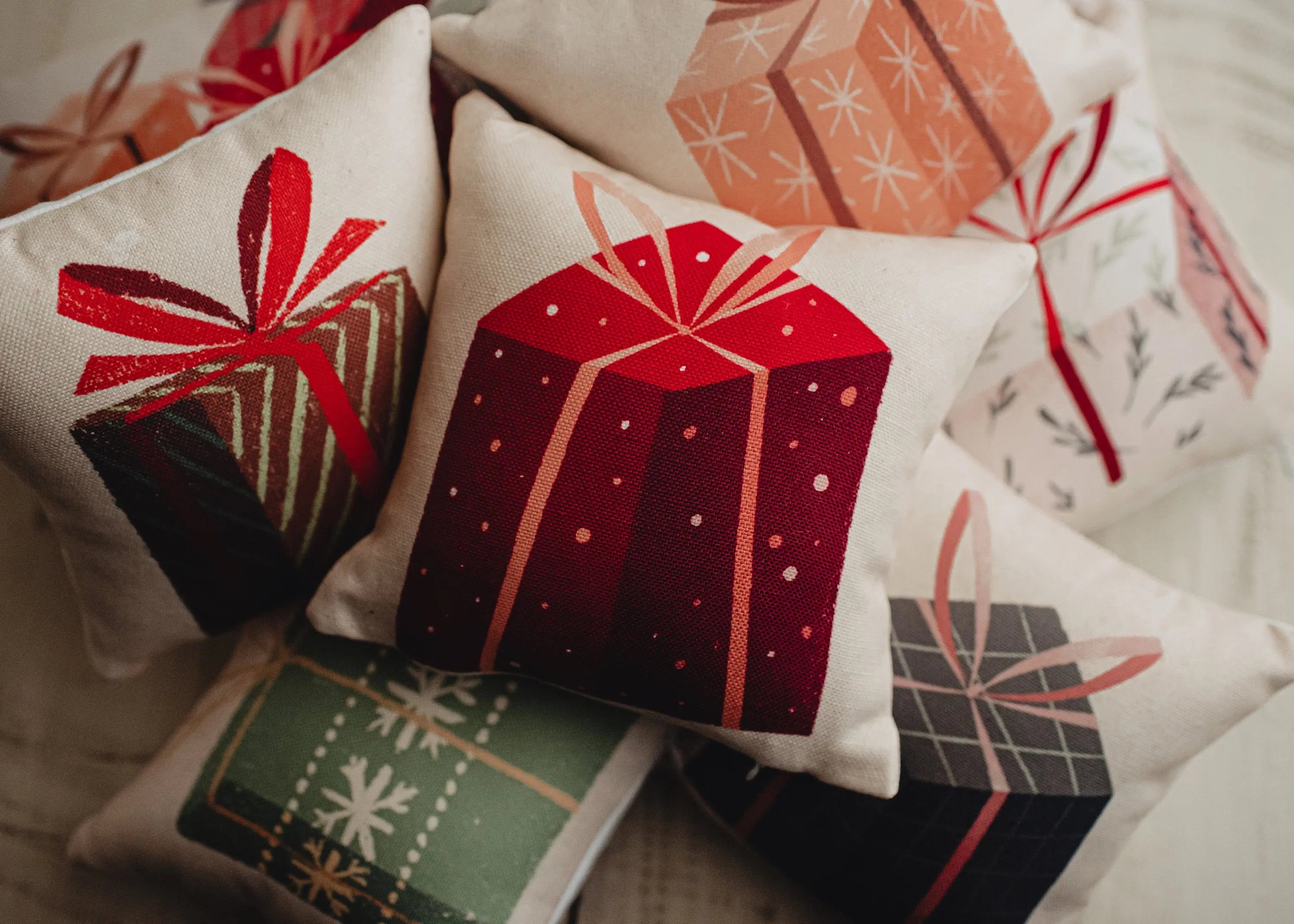 Our adorable collection of mini gift pillows make wonderful stocking stuffers! Or, you can add them to your own rustic and simplistic home this holiday for just the right touch of festive color. By one or all six to get the complete look!