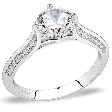 DA036 - High polished (no plating) Stainless Steel Ring with AAA Grade CZ in Clear