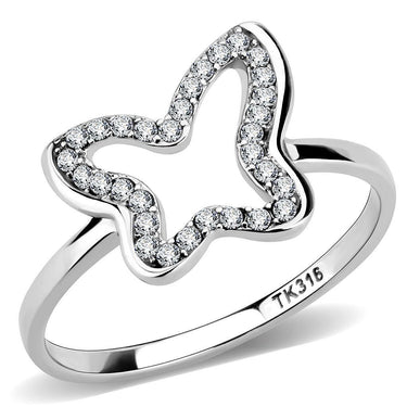 DA241 - High polished (no plating) Stainless Steel Ring with AAA Grade CZ in Clear