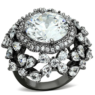 LOA874 - Ruthenium Brass Ring with AAA Grade CZ in Clear