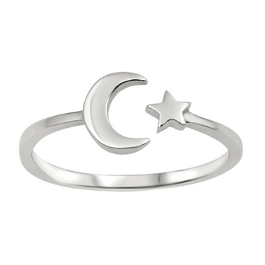 Bring harmony to your everyday by accenting your look with a whimsical ring designed with a minimal moon + star. Plated in precious metal that's been gently brushed to bring out the light-catching shine. Adjustable wrap ring.
