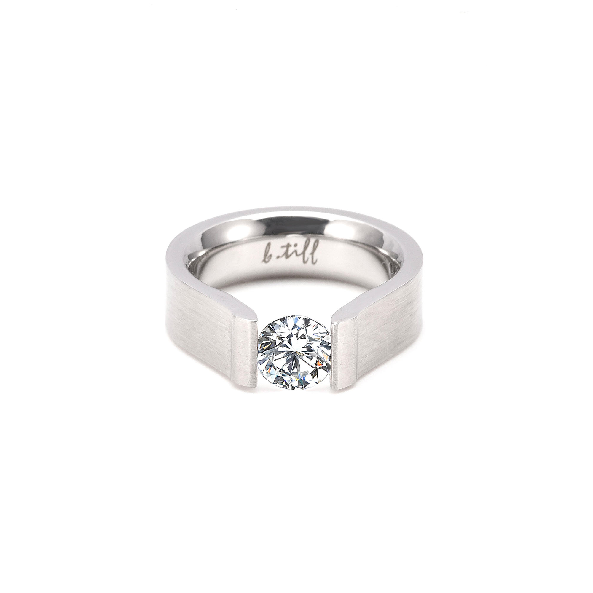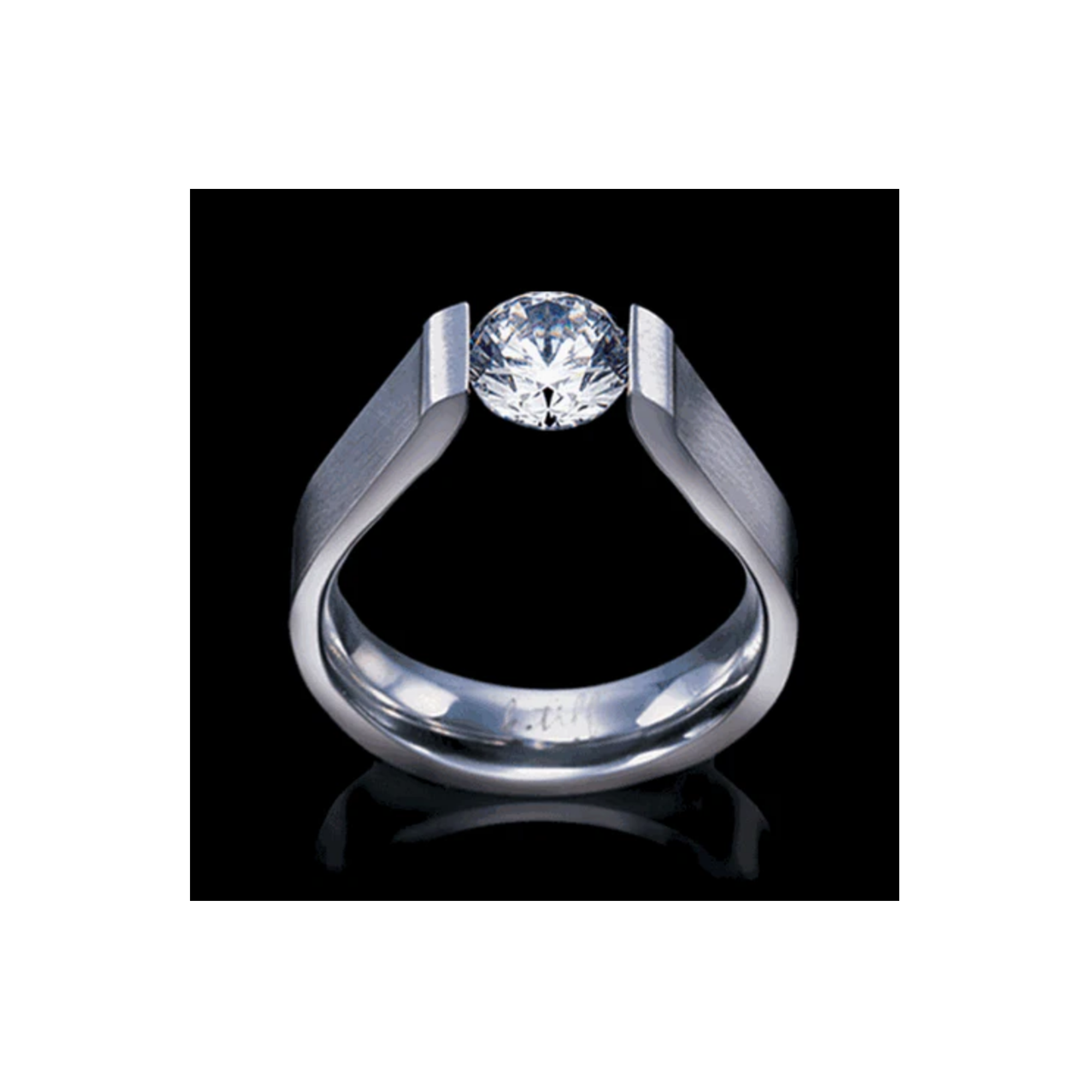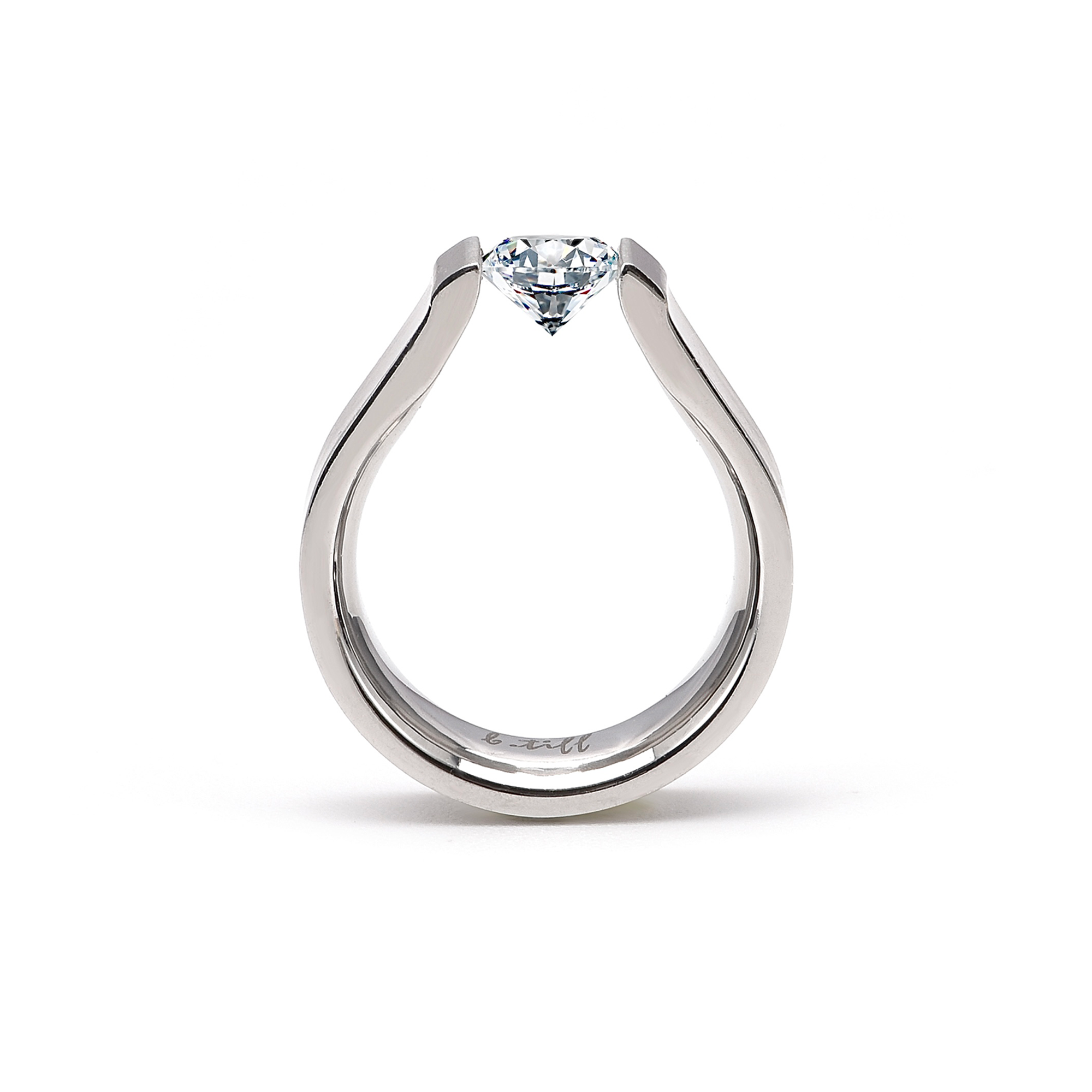 RG091W B.Tiff Tension 1 ct Round Solitaire Curved Edge Engagement Ring by B.Tiff New York