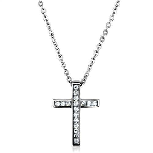 TK1858 - High polished (no plating) Stainless Steel Chain Pendant with AAA Grade CZ in Clear