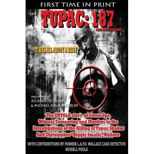 The powerful and compelling true story of corruption, coercion and murder surrounding the Tupac Shakur & Christopher "Biggie Smalls" Wallace homicides brought to 2014. With contribution by former Los Angeles Police Detective Russell Poole, the original Wallace homicide investigator, Michael Douglas Carlin, Director of "American Federale" and Richard "RJ" Bond, director of the "Tupac Assassination" movies take you inside the 18 year odyssey of the derailed murder investigations. Tupac 187: The Red Knight" goes back to the beginning of the investigations-the original police files-and re-examines the people and evidence who have been previously corrupted or ignored. We decided to strip the Death Row Records disinformation machine of its fallacies, and re-paint the witness disparagement campaigns by the Los Angeles Times with the color of truth. When all is laid out raw and exposed under the book's harsh light, "187" clearly evidences the power of the media-both of 1996 and of today- to not only report news-but to make it. Moreover, Tupac: "187" exposes leaks in the Los Angeles Police Department that may have fatally crippled the investigations in both cases; covert operations to collect up investigation notes and findings, key credible witness testimony hidden in detective's desk drawers, complaints of Los Angeles Police employees of their work literally disappearing from their computer files-along with their computers-it's all brought to light. Even in the last year, witnesses took new information to four key L.A.P.D. brass, only to see the body of evidence leaked by one of those in the meeting, to end up on the Internet-risking lives and attempting to sabotage the new information. This book is what you get when you combine the work of the LAPD Detective that found justice for Bill Cosby's son and who broke the infamous LAPD Rampart Scandal to the world, the Filmmaker who dared to follow the Mexican Federale that killed drug lord Pablo Acosta and the award-winning filmmaker who produced the classic "Tupac: Assassination" documentary? You get a whole new group of suspects, motives that support a completely new understanding of the Tupac Shakur and Christopher "Biggie Smalls" Wallace homicides ("187" of the title is the California Penal Code section for Murder) that some in the law enforcement community would rather you not know about. Through actual police and court documents never before published, never released recorded phone conversations from 1996, an unearthed 1998 confession letter and all new and never before released witness interviews, Bond and Carlin follow the cold trail of those responsible for the loss of two of the music industries greatest hip-hop legends. Where they lead will stun and shock the senses. Never before has there been a level of detail in these cases that has been made public; Bond and Carlin, with the help of Poole, go back to the very beginning when leads were new and unbiased, and publicly flush out the Death Row Records dis-information machine that turned good witnesses into targets of smear campaigns, and took the lives of countless witnesses and suspects. Prepare to challenge all you thought you knew about both cases, and get ready to learn new information that will forever change the way you view police, the law and the killings of Shakur and Wallace