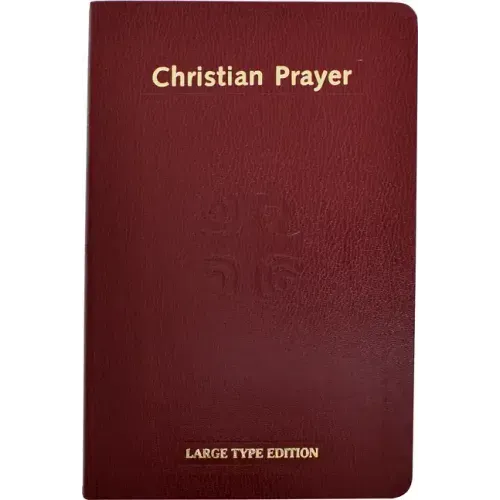 The Large Type Edition of Christian Prayer from Catholic Book Publishing is the official one-volume edition of the internationally acclaimed Liturgy of the Hours. This version of Christian Prayer contains the complete texts of Morning and Evening Prayer for the entire year but not music or the Office of Readings. Does include the Large Type Editions of the current St. Joseph Guide for Christian Prayer (Product Code: 407/G) and Inserts for Christian Prayer (Product Code 407/I). Additional copies of the current St. Joseph Guide for Christian Prayer (Product Code: 407/G) are available for $2.75 each. Printed in large, easy-to-read 14-pt. type, the Large Type Edition of Christian Prayer includes handy ribbon markers and is bound in flexible maroon simulated leather.