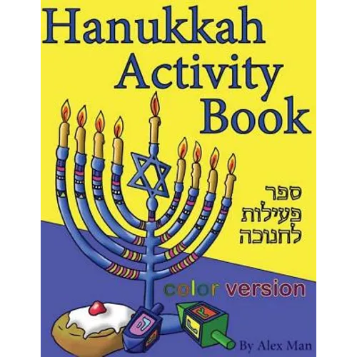 This, color version, Hanukkah activity book is what you are looking for a fun way to get familiar with the symbols of the holiday. You will find a variety of educational activities for the entire family that provides hours of pure fun. The book contains more than 50 activity pages of original artwork. Coloring pages, and bookmarks for coloring suitable for all ages, of the loved images in the theme of Hanukkah; menorah, dreidel, Judah the Maccabee, gelt-coins, donuts, and gifts. A unique design of dreidel for coloring, and assembling. You can all together play a Hanukkah version of tic-tac-toe. For the younger family members, you can find simpler coloring pages, dot to dots, how to draw the guide for a wrapped gift, dreidel, and an oil jug, find the differences, I spy little eye, mazes, matching the silhouette to its figure, and circle the objects related to Hanukkah. All of these activities are original hand-drawn by me, Alex Man. Start to enjoy the spirit of this special holiday. suitable for 5-10 years of age.