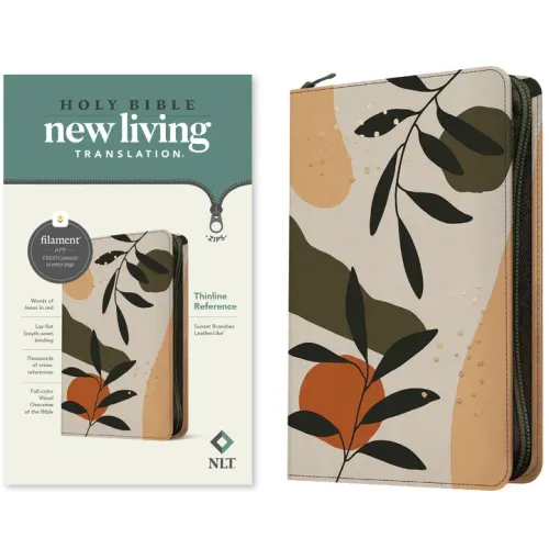 NLT Thinline Reference Zipper Bible, Filament Enabled (Leatherlike, Sunset Branches, Red Letter) - Imitation Leather