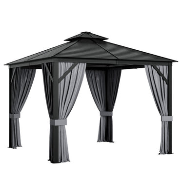 10 x 10 Feet Double-Top Hardtop Gazebo with Galvanized Steel Roof-Gray