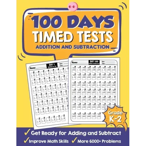 The Timed Tests Addition and Subtraction Practice Workbook with Answer Keys helps your kids Grade K-2 to improve and learning skills from beginner to master. - Everyday Practice Exercise with Timed Test for 100 days- 6000 Problems from Beginner to Master