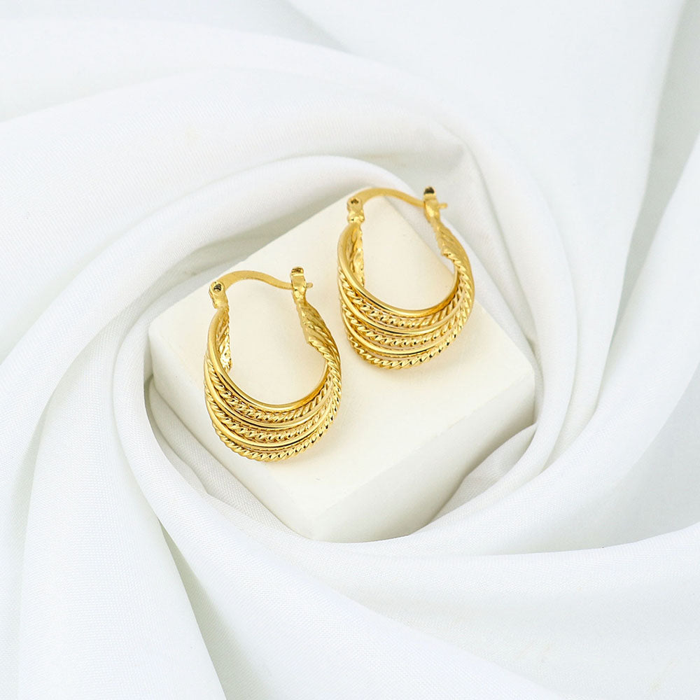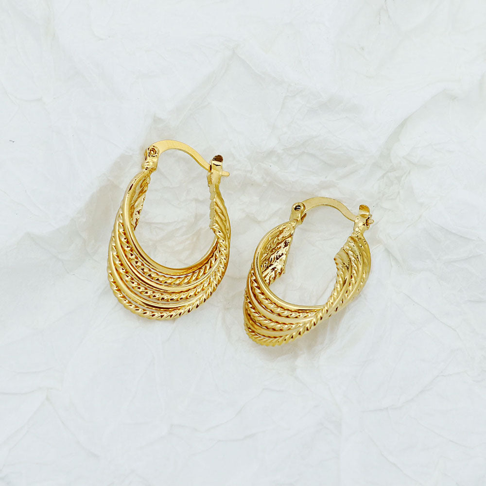 Gold 8 Liner Diamond Cut Hoop Earrings