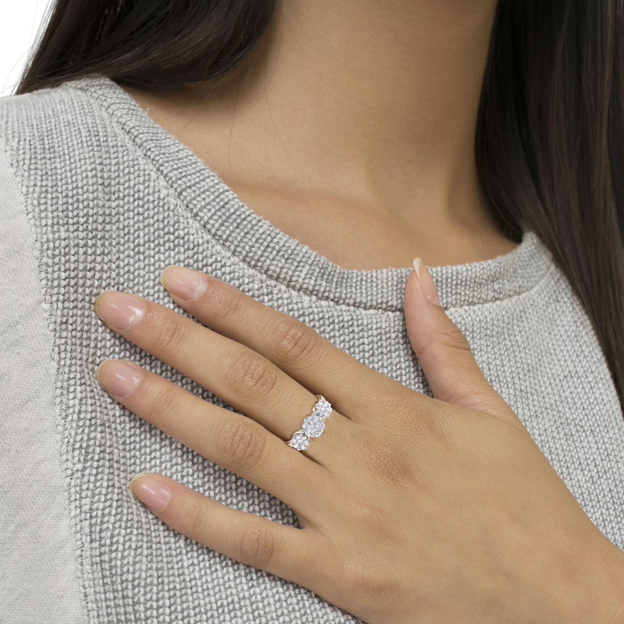 14K White Gold 1-1/4 Cttw Brilliant Cut Diamond Three Round Floral Clusters Engagement or Fashion Ring (H-I Color, SI2-I1 Clarity) by Infinite Jewels