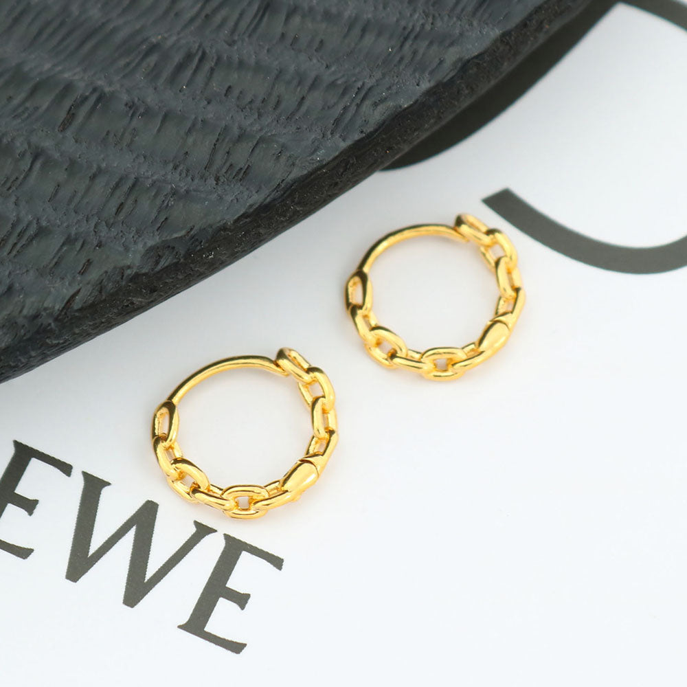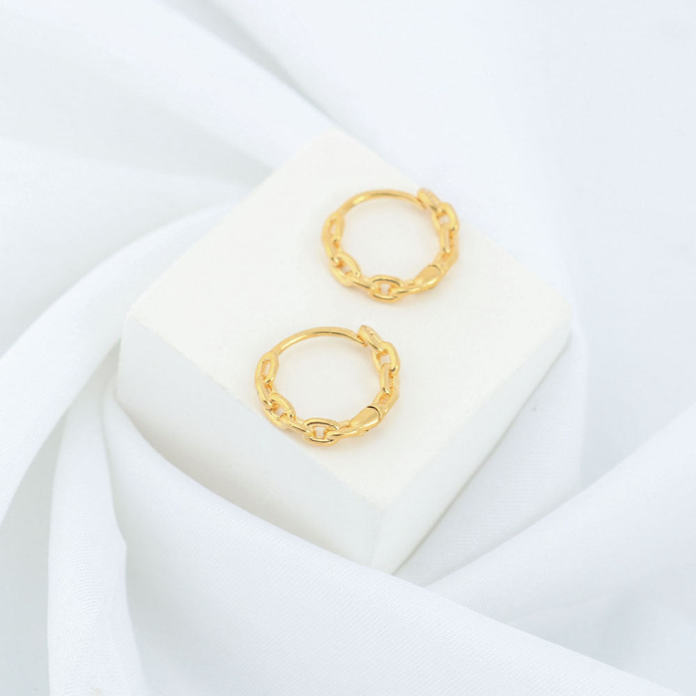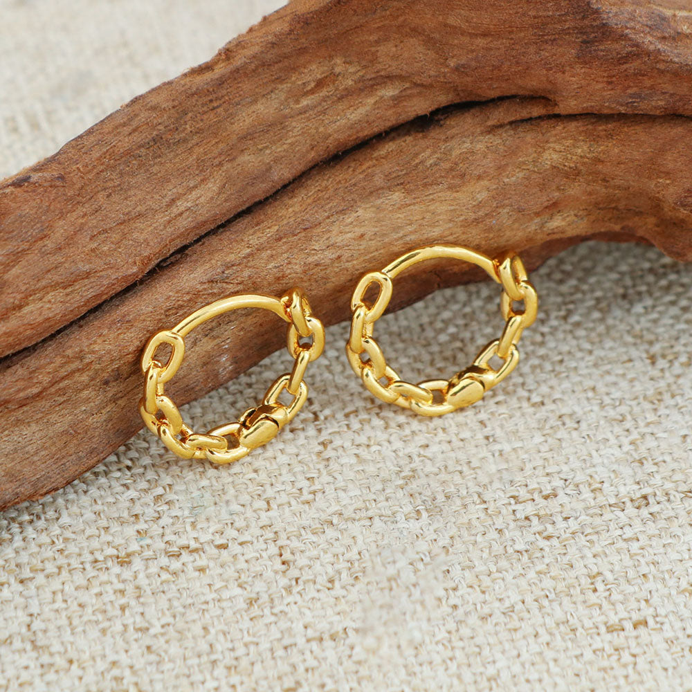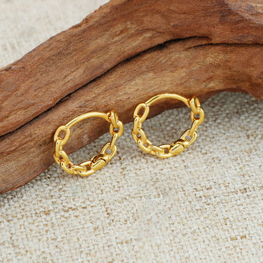 18K Gold Chain Link Endless Hoop Earrings