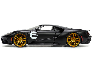 2017 Ford GT #2 Matt Black with Silver Stripes and Gold Wheels "Bigtime Muscle" Series 1/24 Diecast Model Car by Jada