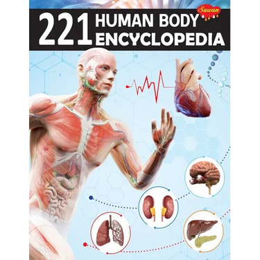 The ""221 Human Body Encyclopedia"" is an essential guide that explores the fascinating world of the human body. With its size of 11 inches by 8.75 inches, this comprehensive book is designed to provide an immersive reading experience. The pages are printed on high-quality 150 gsm paper, ensuring durability and a pleasing tactile experience. One of the standout features of this encyclopedia is its visually stunning presentation. It is filled with high-definition images and captivating illustrations that bring the intricate details of the human body to life. The vibrant colours and attractive design make it engaging and appealing to readers of all ages. The book boasts a best quality art paper that enhances the overall visual appeal. The glossy finish cover not only protects the pages but also adds a touch of elegance. The perfect binding ensures that the book stays intact even with frequent use, making it a durable resource for long-term reference. With over 200 topics covered, this encyclopedia provides a comprehensive overview of the human body. From the intricate systems and organs to the intricacies of genetics and cellular biology, every aspect is explained in a clear and concise manner. The language used is accessible and easy to understand, making it suitable for both young readers and adults alike. Whether you are a student, a health professional, or simply curious about the human body, this encyclopedia serves as an invaluable resource. It covers a wide range of topics, including anatomy, physiology, nutrition, diseases, and medical advancements. Readers will gain a deeper understanding of how the human body functions and the interconnectedness of its various systems. The ""221 Human Body Encyclopedia"" is not just an educational tool but also a source of inspiration. It encourages readers to explore the wonders of the human body and develop a deeper appreciation for its complexity. With its comprehensive coverage and user-friendly approach, it serves as a reliable reference for research, school projects, or personal interest. In conclusion, the ""221 Human Body Encyclopedia"" is a visually stunning and informative book that delves into the intricate world of the human body. Its impressive size, high-quality paper, and captivating illustrations make it a delightful reading experience. With its broad coverage and easy-to-understand language, it is a valuable resource for anyone interested in expanding their knowledge of the human body.