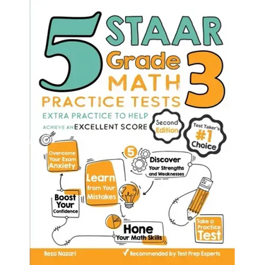 5 STAAR Grade 3 Math Practice Tests, which reflects the 2021 and 2022 test guidelines, is a comprehensive practice book to help students hone their math skills, overcome their exam anxiety, and boost their confidence -- and do their best to succeed on the STAAR Math Test. Five complete and realistic STAAR Grade 3 Math practice tests help students learn how the test is structured and what mathematics concepts they need to master before the test day. The practice test questions are followed by detailed answers and explanations to help test-takers find their weak areas, learn from their mistakes, and raise their STAAR Math score.