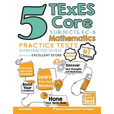 5 TExES Core Subjects EC-6 Mathematics Practice Tests, which reflects the 2020 and 2021 test guidelines, is a comprehensive practice book to help you hone your math skills, overcome your exam anxiety, and boost your confidence -- and do your best to succeed on the TExES Core Subjects Math Test. Five complete and realistic TExES Core Subjects Math practice tests help you learn how the test is structured and what mathematics concepts you need to master before the test day. The practice test questions are followed by detailed answers and explanations to help you find your weak areas, learn from your mistakes, and raise your TExES Core Subjects Math score.