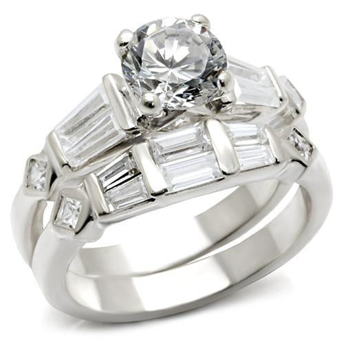 6X014 - Rhodium Brass Ring with AAA Grade CZ in Clear