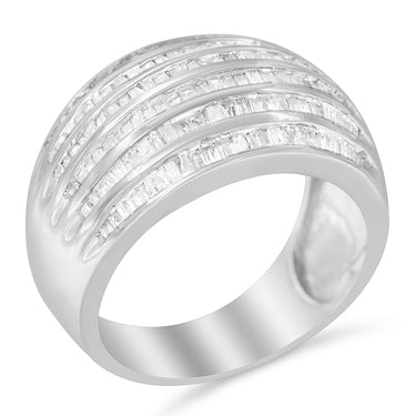 .925 Sterling Silver 1.0 Cttw Baguette-Cut Diamond 6-Row Channel Set Domed Tapered Cocktail Fashion Ring (H-I Color, I2-I3 Clarity) by Haus of Brilliance