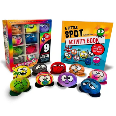 MORE SPOT MINIS! If you own the first mini box set of A Little SPOT of Emotions you will LOVE this Feeling Plush toy set too! This set is a companion to the bestselling book "A Little SPOT of Feelings Books Box Set"! This set comes with a newly released activity book filled with stickers and fun coloring pages. The PLUSH TOY included are: Calm, Frustration, Empathy, Boredom, Flexible Thinking, Feeling Detective, Belonging, Worry, and a Bonus Learning SPOT!