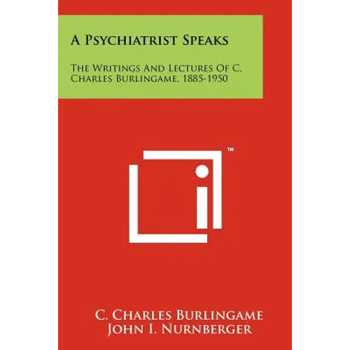 A Psychiatrist Speaks: The Writings and Lectures of C. Charles Burlingame, 1885-1950 - Paperback