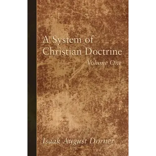 This is Volume 1 of a 4 volume set. ""Dr. Dorner was one of the profoundest and most learned theologians of the nineteenth century."" David S. Schaff Isaak August Dorner (1809-1884) was educated at the University of Tubingen where he studied under F.C. Baur. His academic career led him to posts at Keil, Konigsberg, Bonn, Gottingen, and Berlin. Dorner established his reputation with the publication of 'History of the Development of the Doctrine of the Person of Christ', an indirect response to Strauss. One of the most noteworthy of the ""mediating"" theologians, he has been ranked with Friedrich Schleiermacher, August Neander, Karl Nitzsch, Julius Mueller, and Richard Rothe.