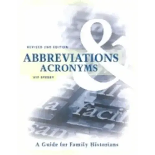 Lists of abbreviations and acronyms, along with alphabetic symbols, initials, contractions, and shortenings of words listed alphabetically as found in genealogical and historical sources. Many listings include brief explanation of abbreviation and acronym. This work is an ideal reference source for genealogists, historians, reference librarians, and others who work with abbreviations or acronyms.