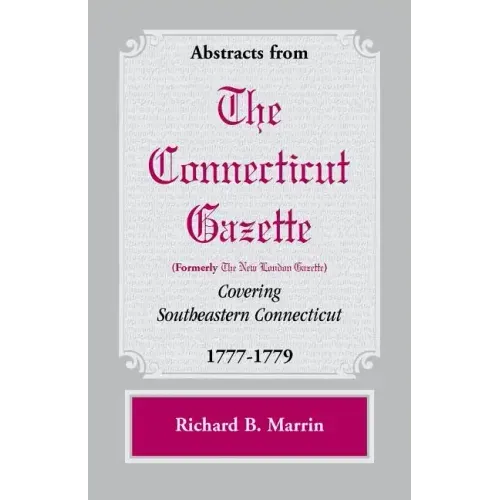 This volume of news abstracts provides a view of both the everyday life of the colonists of Eastern Connecticut and the extraordinary events of the Revolutionary War. The years 1777 through 1779 were more than just another chapter in our nation's history--Connecticut and the country were in the midst of a rebellion against the greatest power in the world. On 17 December 1773, The New London Gazette was renamed The Connecticut Gazette; however, the form of the paper remained unchanged. It was published weekly and normally carried news of Europe, England and the other colonies; followed by local news. Local news sheds a lot of light on town life. Who lived where and what were they like? What did the towns look like? What did the shopkeepers sell? What holidays did the people celebrate? How did they worship? New London was the home of the Gazette; however, Groton, Stonington, Norwich, Saybrook, Lyme, Colchester, Preston, and Lebanon were also served by the paper, as well as the neighboring towns of Windham County. A full name plus subject index augments the wealth of genealogical and historical information preserved on these pages.