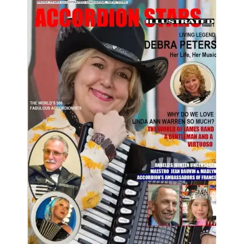 Accordion Stars Illustrated Magazine-Book. Black & White. Vol.1, March 2019. Gracing the cover: Debra Peters, James Rand, Annelies Winten, Linda Ann Warren, Jean Dauvin, Madlyn.Published by Maximillien de Lafayette(R), Times Squares Press(R), Stars Illustrated Magazine(R), New York, and Federation of American Musicians, Singers and Performing Artists, Inc. (FAMSPA). Interviews With Accordion world champions and the biggest names in the business. The world's 500 magnificent accordionists. Why accordion's large Organizations in the U.S. do not publish an accordion magazine? Health problems caused by playing the accordion, instructions for safe lifting and carrying techniques (Your accordion's case).The 10 Best Accordion Cases/Gig Bags. How to reduce fatigue, stress, and pain of the back caused by playing the accordion.