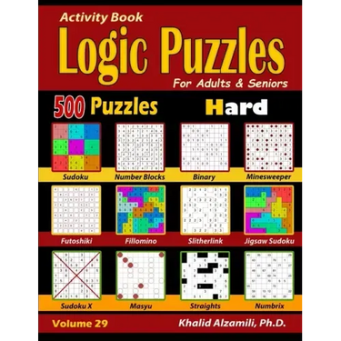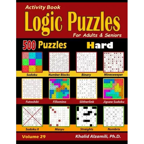 Activity Book: Logic Puzzles for Adults & Seniors: 500 Hard Puzzles (Sudoku - Fillomino - Straights - Futoshiki - Binary - Slitherlin - Paperback