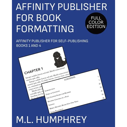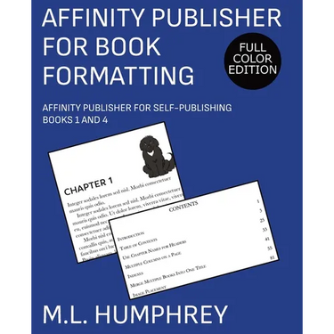This book will walk you through how to use Affinity Publisher for both a simple fiction layout with an accent image as well as other more advanced topics such as how to insert tables of contents, indexes, and images.