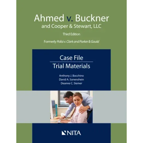 Ahmed v. Buckner is the new incarnation of the popular case file Polisi v. Clark. The defendant business is now an accounting firm, rather than a law firm. Updated exhibits include computer records, text messages, and emails, allowing lawyers to practice their skills in laying foundations. The deposition file has three witnesses for each side. The trial version includes two additional expert witnesses and their reports. Whether they are law students or practiced lawyers, this engaging case file will hone participants' advocacy skills.