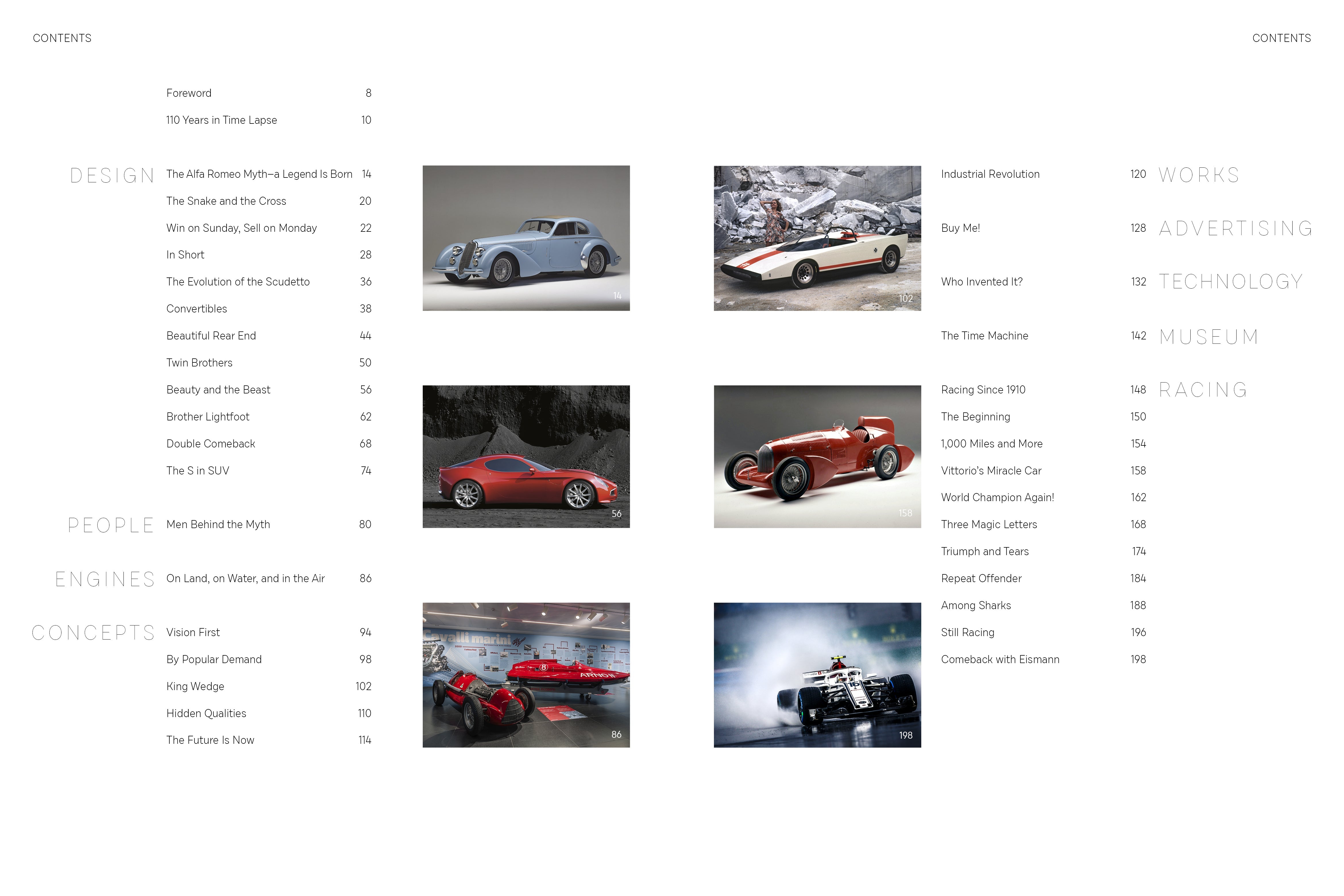 • a thorough timeline of all the important events and milestones in Alfa Romeo’s 110-year history, 1910–2020;