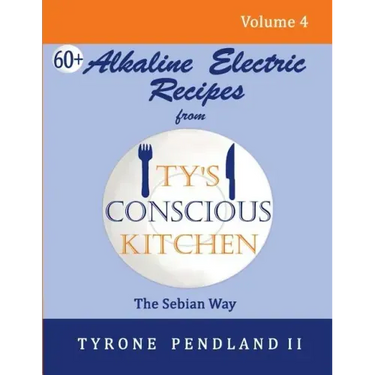 Alkaline Electric Recipes from Ty's Conscious Kitchen: The Sebian Way Vol. 4 contains 67 recipes, specifically created with food items found on Dr. Sebi's nutritional guide. These energy-containing, electric foods can assist with transitioning to & maintaining a more alkaline based lifestyle.In this edition you'll find Ty's famous Alkaline Electric versions of "Chicken" & Waffles, Lasagna, Hot Dogs & Funnel Cakes Transitioning away from unhealthy foods has just gotten easier In addition to the 67 recipes, you'll find the following helpful information: - Suggested Shopping Guide- 5 Day Sample Meal Plan- Kitchen Conversions & more Ty creates recipes using simple, easy to follow methods with non-hybrid, indigenous and alkaline whole foods. His dishes can easily replace many of the foods and condiments found in today's western diet. You can enjoy these recipes while transitioning to & maintaining a more alkaline and electric based lifestyle, including alkaline vegan, according to Dr. Sebi's methodology. Ty has applied his creativity to over 180 recipes, including Alkaline Electric versions of Veggie Omelet, Sausage Links and Macaroni & Cheese. He is also known for his original signature recipes including Ketchup, Barbecue Sauce, Vegan Ribs and Homefries. Ty's previous cookbook Vol. 3 is a Dessert Edition and includes never before shared recipes of Alkaline Electric Cake & Frosting, Donuts & Banana Coconut Cream Pie to name a few. Of course, as with all of Ty's recipes, he personally ensures each recipe "looks delicious & tastes delicious " You can find Ty demonstrating step by step, how to create his Alkaline Electric dishes on his YouTube show 'Ty's Conscious Kitchen' and you can also learn more about his cookbook series "Alkaline Electric Recipes from Ty's Conscious Kitchen: The Sebian Way: Vol. 1 (36 recipes), Vol. 2 (56 recipes) & Vol. 3 (24 recipes), by visiting his website www.tysconsciouskitchen.com.