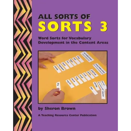 * the most comprehensive books on word sorting available * a wide range of sorts offered at all developmental levels * great for on-grade level, remedial, ESL, Title I, and Reading First All Sorts of Sorts 3 Concentrates on vocabulary instruction. Vocabulary acquisition has been shown to occur through repeated and multiple exposures, through active engagement in learning tasks, and through incidental learning. In these 155 sorts, the students are exposed to words commonly covered in science, math, health, and social studies. The sorts follow closely the national standards for these content areas. By categorizing the vocabulary words by their different characteristics of meaning, students can reflect on their meaning and make concrete connections.