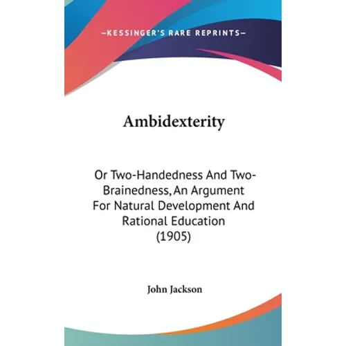Ambidexterity: Or Two-Handedness And Two-Brainedness, An Argument For Natural Development And Rational Education (1905) is a book written by John Jackson. The book explores the concept of ambidexterity, or the ability to use both hands equally well, and the idea of having two brains. Jackson argues that ambidexterity is a natural human trait that has been suppressed by societal norms that favor right-handedness. He also suggests that having two brains, or using both hemispheres of the brain equally, can lead to greater creativity and intelligence. The book discusses the benefits of ambidexterity and two-brainedness, including improved physical coordination and mental agility. Jackson also argues that a more rational approach to education would include teaching ambidexterity and encouraging the development of both hemispheres of the brain. Overall, Ambidexterity: Or Two-Handedness And Two-Brainedness, An Argument For Natural Development And Rational Education is a thought-provoking exploration of the potential benefits of ambidexterity and using both hemispheres of the brain. It challenges traditional ideas about handedness and brain function and advocates for a more holistic approach to education.This scarce antiquarian book is a facsimile reprint of the old original and may contain some imperfections such as library marks and notations. Because we believe this work is culturally important, we have made it available as part of our commitment for protecting, preserving, and promoting the world's literature in affordable, high quality, modern editions, that are true to their original work.
