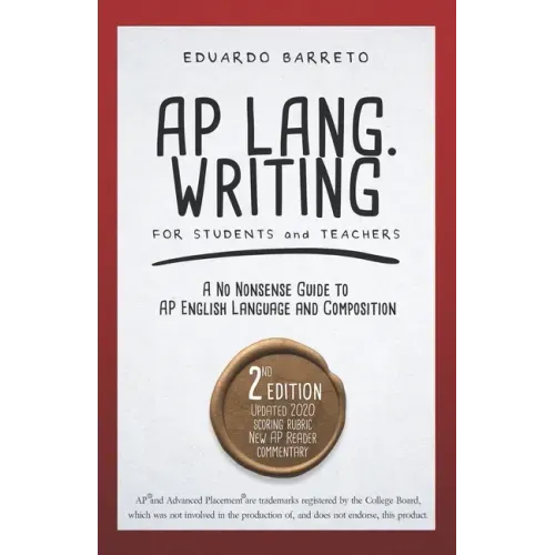 This book condenses thorough research, my experience as an AP Reader, and my own classroom practice, into a guide that provides practical and ready-to-use information, which is organized systematically and comprehensively, and is accompanied by a variety of student essay samples, as well as scored student essays - all to show, simply, how one teacher teaches his AP English Language and Composition class. This concise instructional manual can be used by either the instructor of the class or by those who have the time and interest in instructing themselves. The sections of this text are designed for students looking for condensed information that will clarify their classwork or pacify their concerns about course material. The curriculum advice and materials herein, such as handouts and worksheets, can also be used by those new to AP LANG or those veteran instructors who are searching for new ideas to re-structure their class or want to freshen up their pedagogy for the upcoming year. To both, the teacher and the student, this guide will save you time and effort. After publishing the first edition of the book, titled, "AP Lang. for Students and Their Teachers," I decided to use it in my own class, as a way of pacing my own instruction and as a test of the book's efficacy. The result of the experiment was this second edition. While I had initially only intended to give this edition a facelift, the process of rewriting, rewording and revising resulted in the addition of new sections, with fresher and altogether clearer material. The bulk of the information is otherwise unchanged, but the explanations and examples are sharper, the new scoring guidelines are simplified and meticulously illustrated, and the content, I can now proudly say, has stood the test of classroom instruction. My experience as an AP Reader for the English Language and Composition exam has helped me get a feel for the pulse of Lang. classes around the country and has furthered my understanding of what many teachers and students are doing in the classroom. With this new perspective, my new edition better captures the expectations of the class and more effectively instructs students to become better writers and better thinkers.