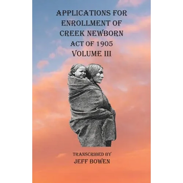 This series transcribes the Applications for Enrollment of Creek Newborn, National Archive film M-1301 (Act of 1905), as described in the National Archives publication American Indians. These applications represent one component of the larger body of applications for Enrollment of the Commission to the Five Civilized Tribes, 1898-1914 (Dawes Commission). Under the terms of the Dawes Allotment Act of February 8, 1887, which established the Commission and had the effect of breaking up the Five Civilized Tribes as social units, parcels of land within the Indian Territory were to be awarded to Native Americans according to their degree of Indian blood, age, and family status. The term "newborn" referred to each Creek individual living within a qualified Creek (or other tribal) household who was four years of age or less and not an orphan--up to the time that the President awarded the land allotments. Under this definition each Creek newborn was to receive forty acres of Indian Territory. The importance of the original Creek applications found in M-1301 and transcribed in this series is that they contain more information and establish family relationships not found on the census cards in National Archive film M-1186, the basis for the seminal title Final Rolls of Citizens and Freedmen of the Five Civilized Tribes in Indian Territory [and] Index to the Final Rolls.