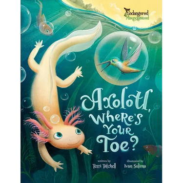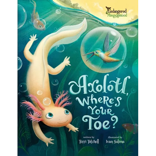A little axolotl with a big imagination dreams of seeing the daylight for the first time. With help from a shimmering hummingbird, he learns that courage can be quiet and that small steps can lead to big discoveries. Told in lyrical rhyme with heart and humor, Axolotl, Where's Your Toe? delights curious kids while teaching gentle lessons about bravery and belonging. Includes a fact page on real axolotls-frilly gills, regeneration, and habitat-and a reminder to be kind to wildlife. From the Endangered & Misunderstood series, where wonder turns into care.