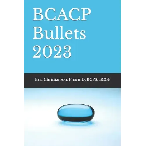 Updates for 2023 BCACP Exam Takers! To keep the content as current as possible, we've updated, edited, or added content in the following disease states: Anxiety, Asthma, C. Diff, CHF, COPD, COVID-19, Crohn's, Dementia, Depression, Diabetes, DVT/PE, GERD, HIV/AIDS, Influenza, Menopause, MS, Obesity, Osteoarthritis, Parkinson's, Regulatory, Rheumatoid Arthritis, Smoking Cessation, Stroke, Tuberculosis, Ulcerative Colitis, Vaccines and more! With historical passing rates in the 60% range, the BCACP exam is one of the most challenging exams you will ever take in your life. To top it off, you are likely busy with your own life and free time to study is minimal to none. I've always had a hard time staying focused while studying from large review article type material and have squandered hours reading and felt like I retained nothing. I wanted to remember the really important stuff because I know it is impossible to know every minute detail. BCACP Bullets, the Condensed BCACP Study Guide will help prepare you for the exam as well as help you maximize your study time. We covered over 100+ disease states and included important pearls for each condition including assessments, risk factors, most commonly used drugs of choice, must know adverse effects, notorious drug interactions, warnings and precautions, and of course, relevant labs. I wanted to cover each disease state in 1-2 pages to try to ensure you are reviewing the most relevant content. We did go over 2 pages on some disease states, but we did our best to keep the information concise and critical for you to know in your preparation for becoming a BCACP pharmacist. The book is over 300+ pages, but it is very easy to digest multiple disease states at a time. As many of you are aware, from the content outline, the BCACP exam is not all clinical. In addition to the disease states on the BCACP content outline, we've also included sections on biostatistics, pearls for ambulatory practice including billing codes, as well as important regulatory issues. I can assure you that there is no doubt this book will help in your preparation for becoming BCACP certified! Best of luck on this challenging journey!