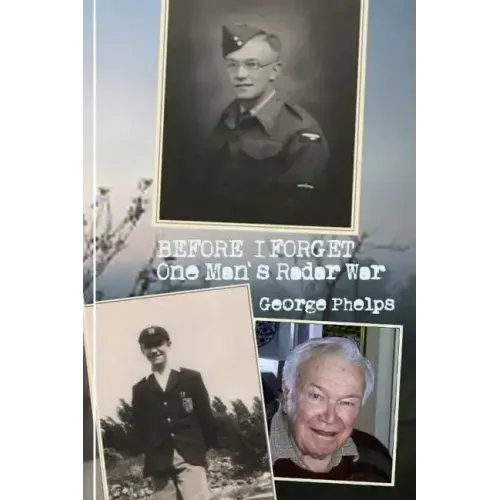 BEFORE I FORGET - ONE MAN'S RADAR WAR is a richly readable account of the life of a young RAF serviceman during WW2. It is a personal memoir of wartime through the eyes of one young man determined to live life to the full while always trying to do the decent thing. Sometimes even finding fun during the fight against fascism. As you read his story you will meet his young wife for the first time and watch their relationship develop under the cloud of war and enforced separation. You will be with them as their son is born during the Little Blitz while V1s rain down on London. And when the first of the V2 rockets strikes a few streets away from their home you will travel with George as he goes AWOL to spirit mother and baby away from London to safety in the English countryside. The top secret radar system George Phelps helped maintain made precision bombing possible for the first time. Seventy years on, the story of this system (nicknamed OBOE) is almost forgotten. Yet it did much to turn the tide of WW2. But this book is much more than a history of OBOE. This is, above all, a human story - wartime history seen through a wide variety of individuals all making sense of it in their own different ways. There are football matches, black marketeers and US servicemen - "overpaid, oversexed and over here", as the saying went at the time. But there are also glimpses of the awful realities of war - a sad insight into American losses on D-Day, a visit to a concentration camp, and a journey through the ruins of Essen, where the OBOE story began - now flattened and devastated by a series of thousand-bomber raids. OBOE was a brilliant breakthrough in the use of radio transmission to pinpoint a bomber's position in the air and trigger the bomb release at the precise moment necessary to deliver it on to a target up to 35,000 feet below with an incredible degree of accuracy. It was thought at first that it could only be used once before the Germans found a way to jam it, but OBOE continued to direct raids on a regular basis for a some 18 months in the middle of the war, helping the RAF to carry out precision bombing raids on Germany's vital industrial heartland of the Ruhr. Working in radar installations on the east coast of England, George Phelps was a long way from the fighting. At first his leisure hours were filled with card games and what seemed like nightly dances, generally with plenty of pretty young WAAFs in attendance. But towards the end of the war, when the brand-new technology of microwave transmission (antecedent of almost all the modern communications revolution) enabled the miniaturization of OBOE, mobile units were formed which travelled into Europe behind the advancing D-Day armies. Even then, though, George's war seemed to consist mostly of softball matches organized by the Canadian airmen now attached to his unit, and dances. Always dances, and plenty of girls - only this time they were in Alsace, newly liberated from Germany. And when his unit came anywhere near the enemy (as they did), they had to pick their top secret equipment up and run away as fast as they could. BEFORE I FORGET is the story of five years of one young man's life, finding fun, friendship and laughter amid the turmoil of WW2. Doing a job that took a new technological war to the Germans - but always, somehow, able to find a dance to go to, and pretty girl to enjoy it with.