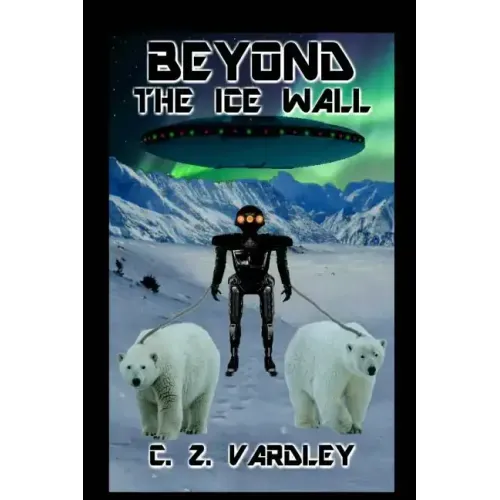 BEYOND the ICE WALL by C. Z. Vardley Vegetation killing virus (VKV) has escaped and is destroying civilization after 2026 and thus thinning oxygen from the atmosphere drastically. Near the end of the 24th Century mankind has long been totally dominated by a group called Ultimate Control Command (UCC). This organization has forced the reverse evolution of people until they are only tiny in body and without much spirit. They must breathe through tubes attached to backpacks, like ocean divers do today. The virus can't reproduce in ice, so the few humans still alive exist behind a high ice wall they've built across southern Alaska and Canada. A few normal sized workers are kept as slaves to maintain the ice wall, until two escape. This starts a chase involving tiny soldiers and a giant robot with polar bears as its trackers. A big flying saucer Generadmiral Schnicknalgruten Pavlich commands, while bossing and intimidating everyone, is an important feature of the story. His powers are finally challenged by a totally surprising source and the final fight for the world occurs.