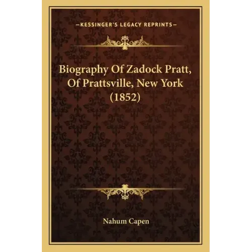 Biography Of Zadock Pratt, Of Prattsville, New York (1852) - Paperback